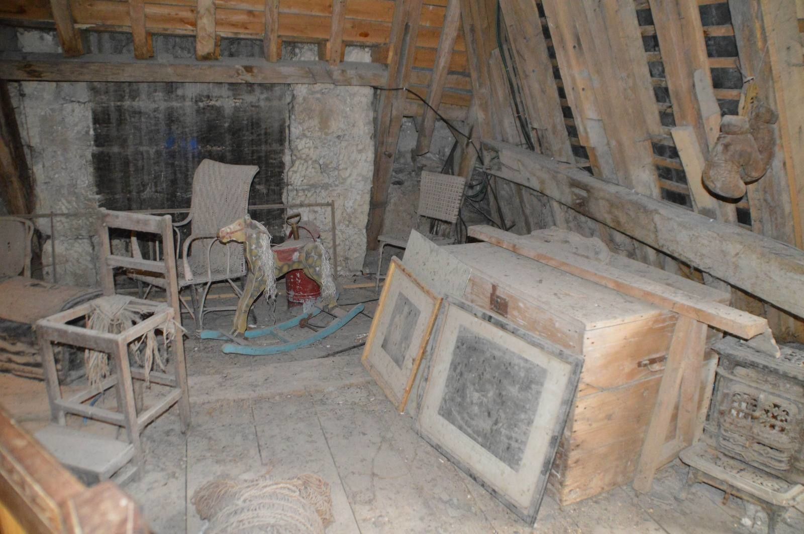 et nous traversons ensuite des greniers remplis d'objets plus bizarres les uns que les autres